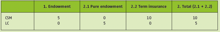 As, under IFRS 17, losses have to be taken into account immediately, while profits are spread over the lifetime of the policy, the two separate policies (for a single policyholder) would results in a loss at the start of the contract, while for the combined endowment product, there is no P&L impact at inception.