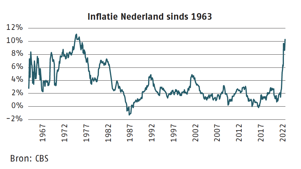 De huidige inflatie blijkt hardnekkiger dan tot voor kort werd aangenomen. Ook de ECB en DNB maken zich zorgen, en momenteel (september 2022) is de marktverwachting dat de ECB de rente zal verhogen om de inflatie te bestrijden. Maatschappelijk klinkt de roep om de inflatie voor bepaalde groepen te compenseren. Het lijkt dus dat economische agenten beginnen te reageren op de verhoogde inflatieverwachtingen, wat weer een eigen dynamiek kan geven. We zijn naar verwachting niet direct af van de inflatie.