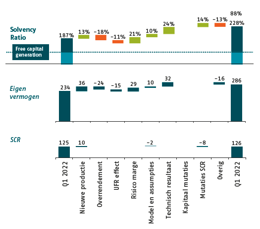 - Wijzigingen in het eigen vermogen door veranderingen in de Risico Marge en de Best Estimate Liabilities.